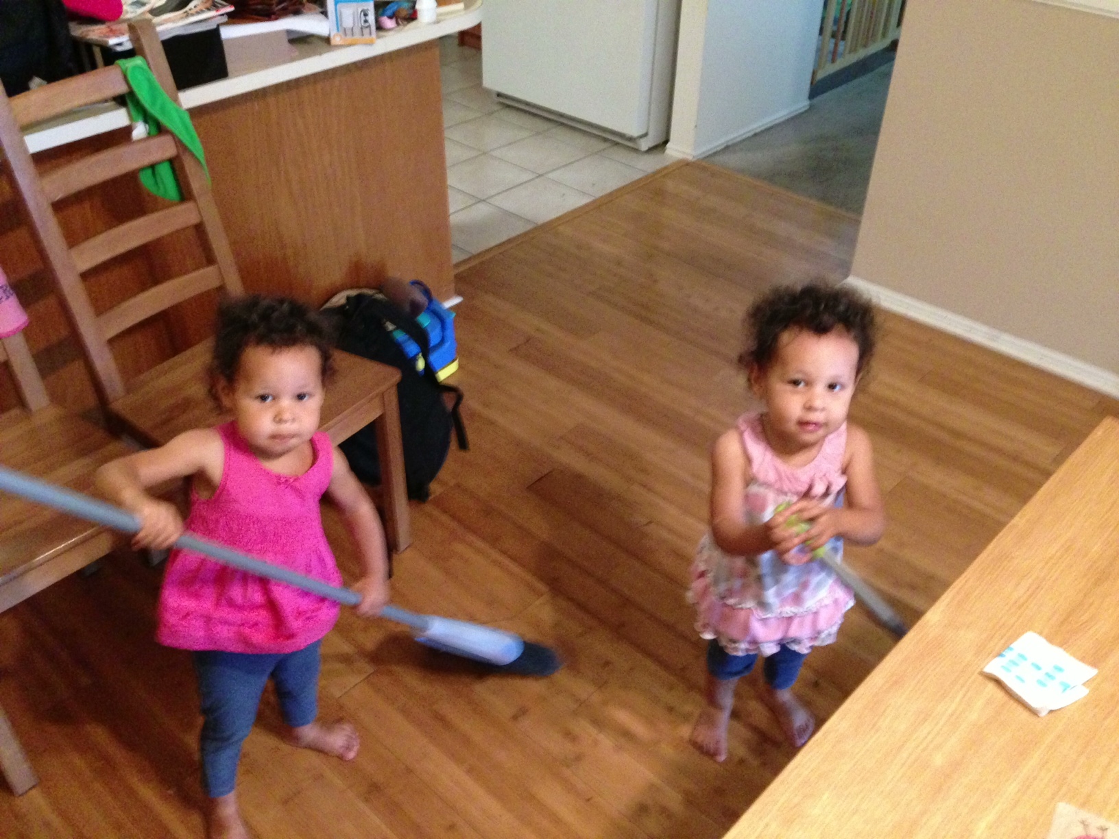 Helping Daddy sweep the floor. No, really... we ARE helping!  Really!