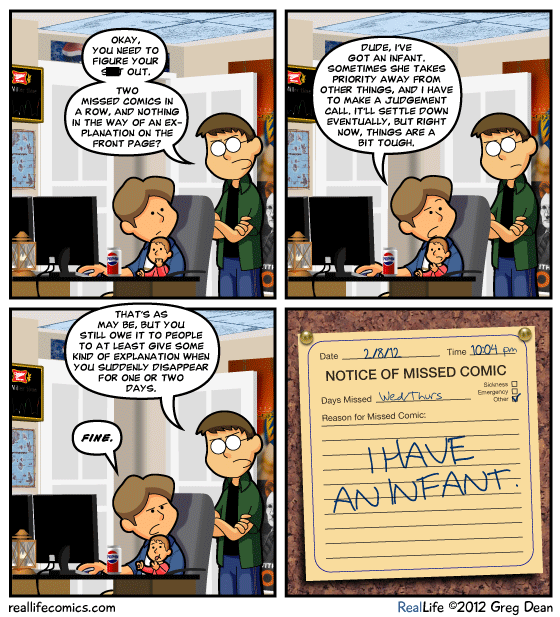 Midweek. My day started with pre-work cuddles from both of the girls. AND there shall be new comics today. AND tonight is “Pasta and Movie Night.” I’d say that this is a Wednesday full of “Win.”