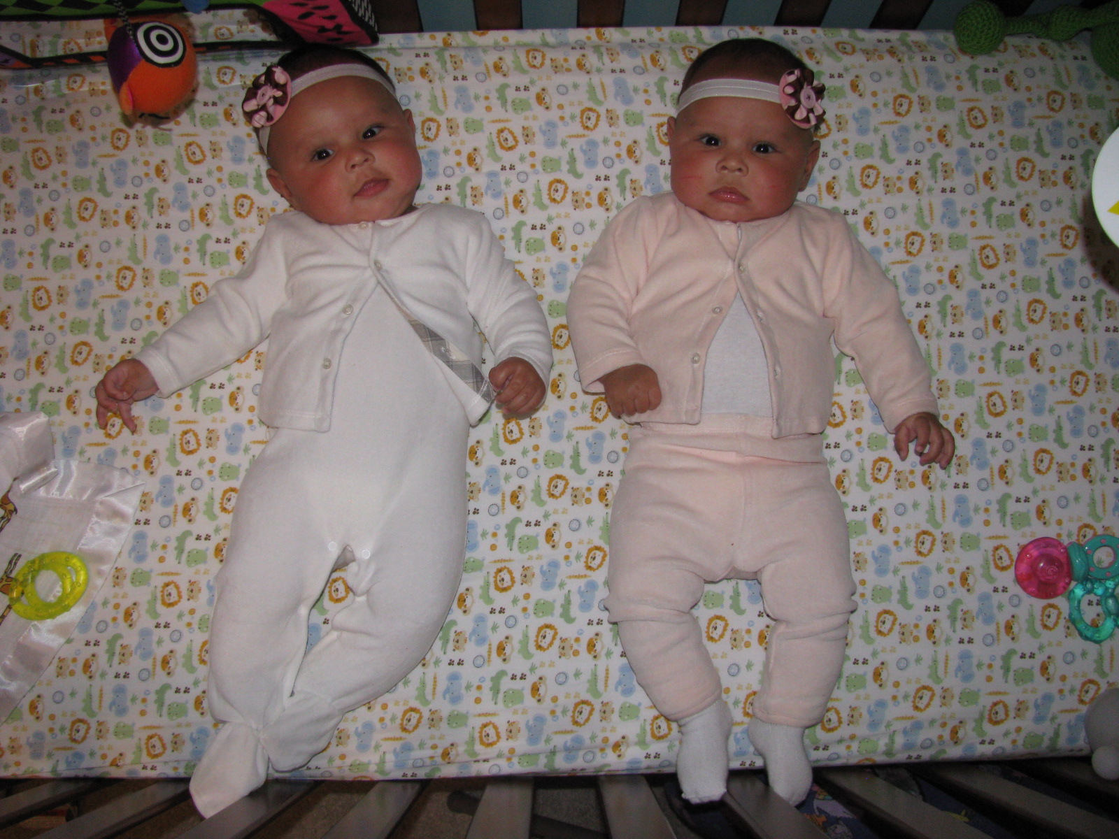 Both little ladies are doing well, despite long crying jags in the wee hours of this morning: Diana started around 2:30, Vanessa around 4:00. We’re trying to get the girls to learn to put themselves back to sleep when they wake up in the middle of the night, so we didn’t go immediately rushing in to comfort them…