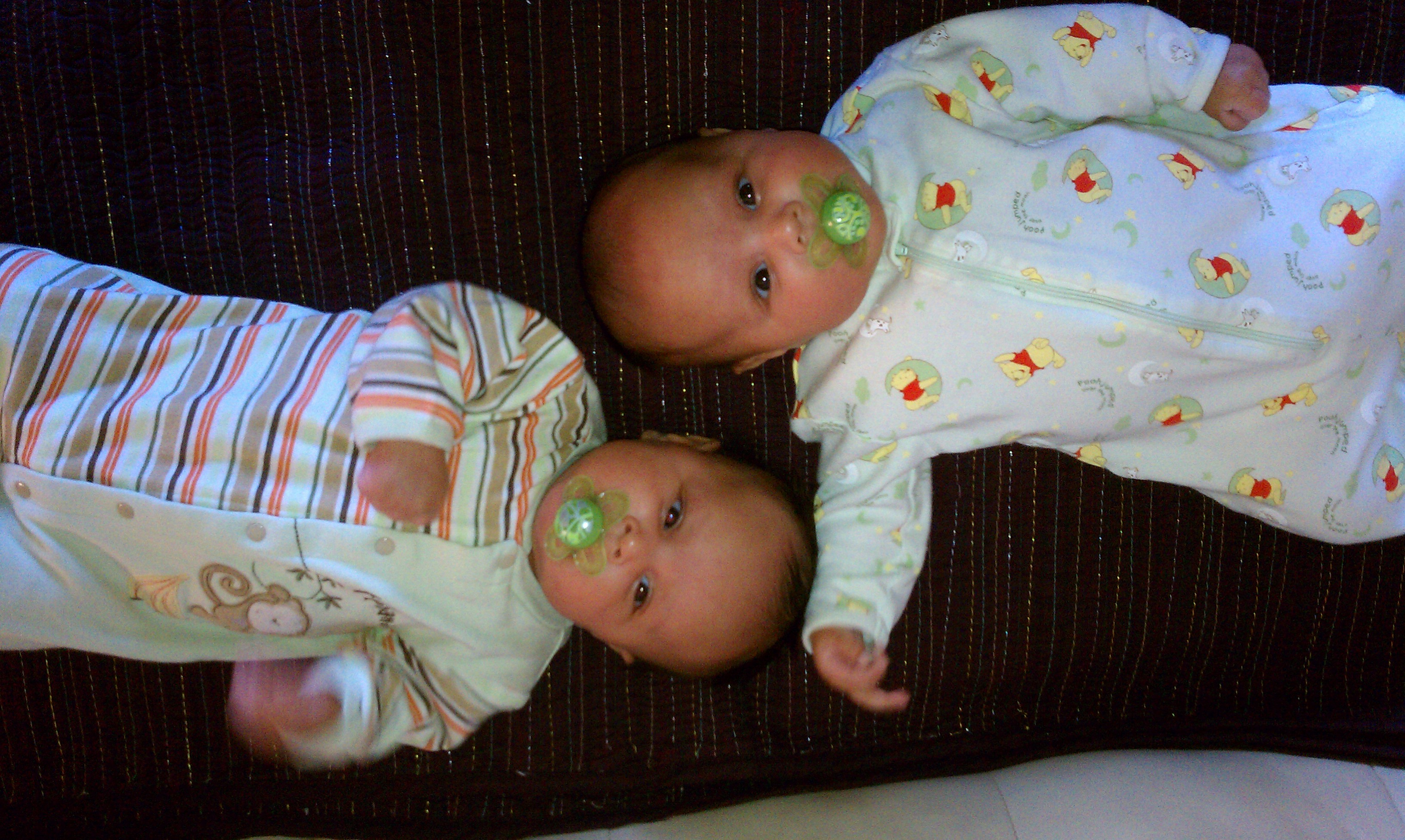 Last night, the girls spent their first night in their cribs. In their room. All night. It’s nice to be able to say that the girls – as well as SaraRules! and I – survived the experience just fine. The girls slept well, aside from Vanessa deciding that she didn’t want to go back to sleep after her 2:30 feeding. An hour later, she finally drifted off. They woke up again about 8:00. Hey, that counts as sleeping in.