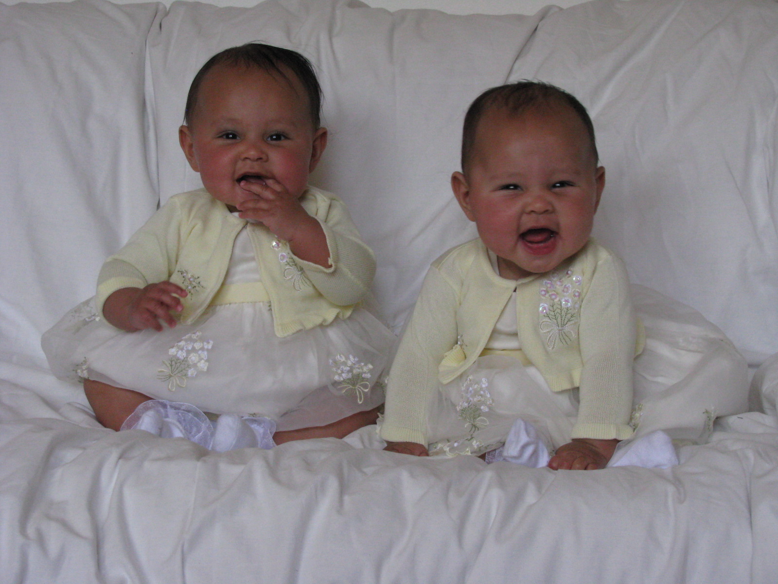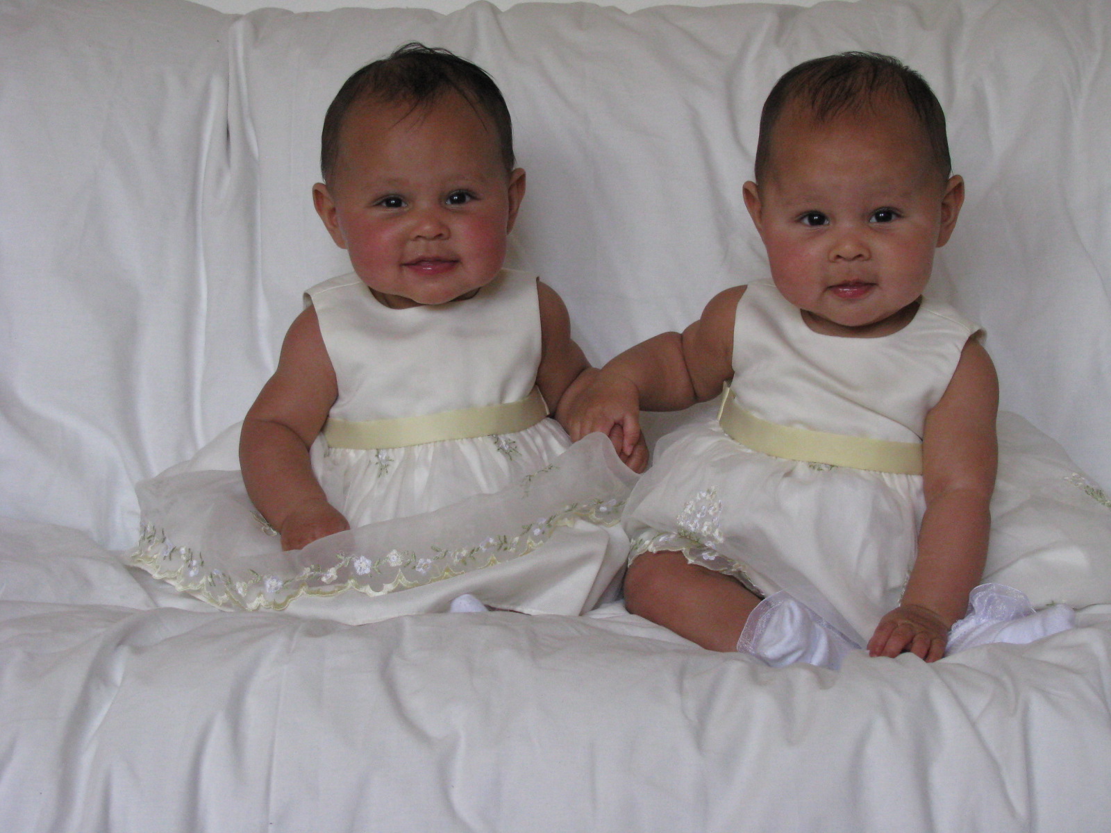 Diana and Vanessa in their new Easter dresses, just back from their first Mass: